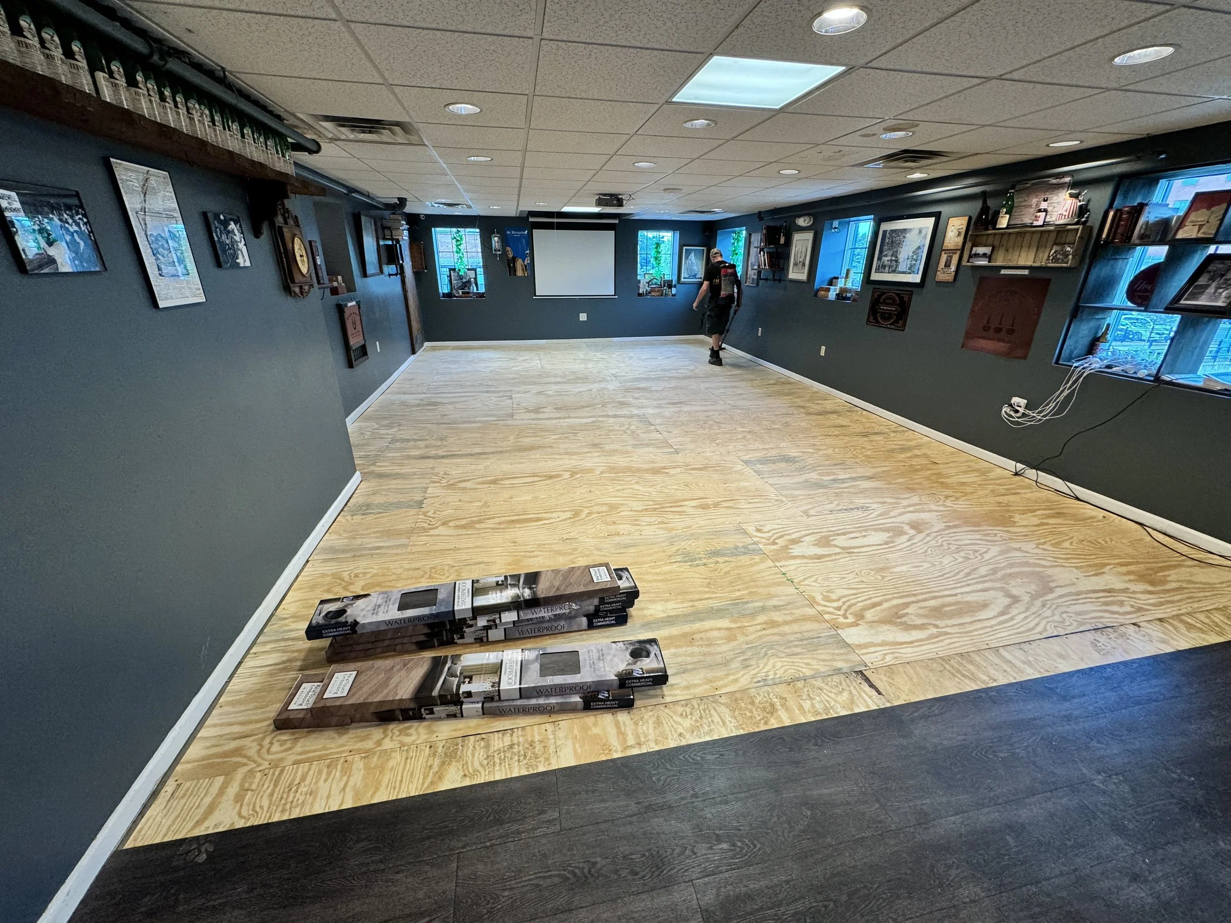 Custom Bar, Flooring, Shelving, Lighting, & Windows